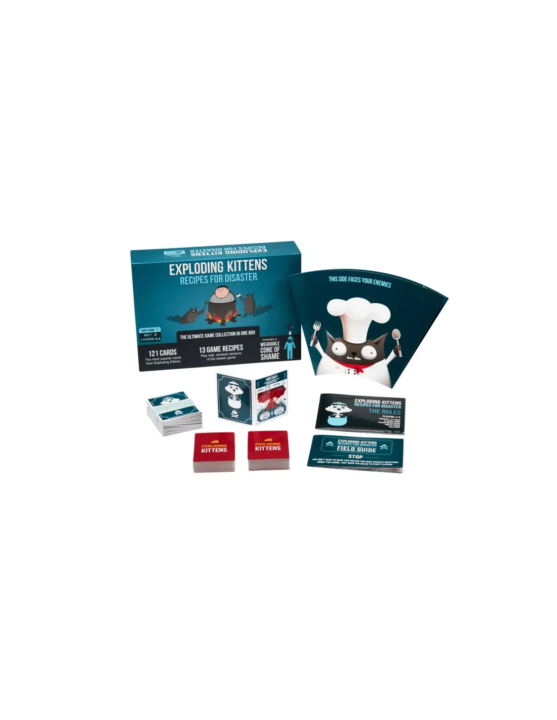 Recipes for Disaster has everything beginners need to play their first game of Exploding Kittens. For more experienced players, it’s got all the best cards from our expansions, as well as Recipe Booklets used to unlock over a dozen brand new game modes.
