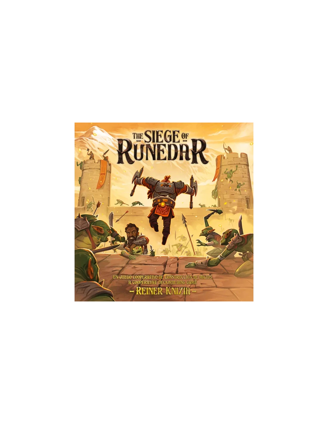 The Siege of Runedar is a co-operative game for 1-4 players who take on the role of dwarves charged with defending the walls of Runedar and the treasure they keep within. They will have to face orcs, goblins, and trolls, fighting in hand-to-hand combat against those who manage to get past the walls and shooting from a distance at those who try to enter. A deck-building system allows players to upgrade their weapons and tools as they must hold off the raiders long enough to build a tunnel to escape the terrible siege they have been subjected to and get the treasure to safety.